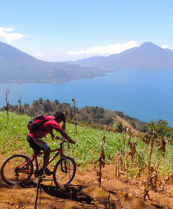 Cette aventure à vélo commence à Panajachel où nous prendrons une voiture qui nous emmènera au sommet de la montagne pour commencer notre aventure sur des chemins de terre et des sentiers et beaucoup de paysages, nous traverserons également des plantations d'oignons, de fleurs, d'avocats,.