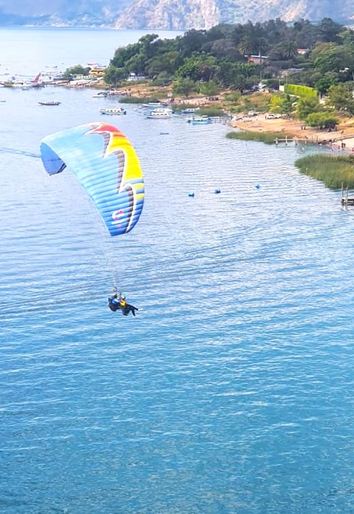 It consists of Leaving Panajachel by car that will take you to the top of the mountain, where our guide specialized in paragliding will accompany you throughout the flight and will guide you through the air over the lake until you land in Panajachel.