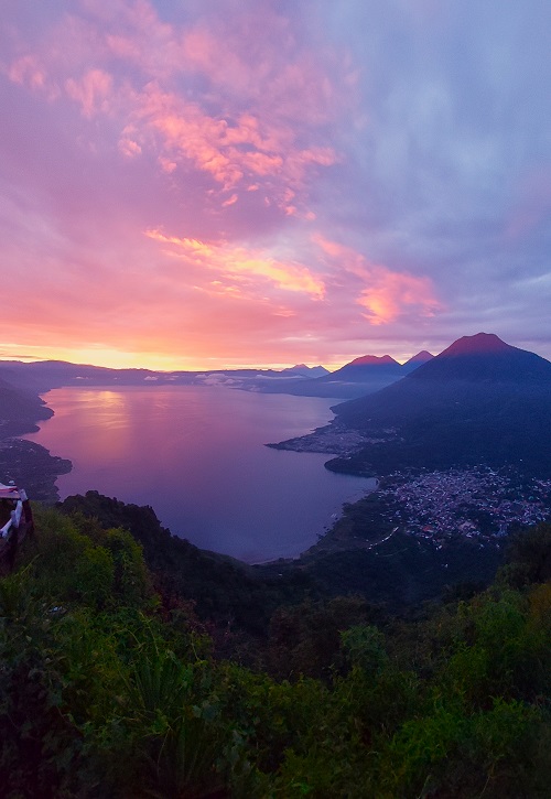 Salimos de Panajachel a las 03:30 de la mañana en bus que nos llevará hasta el publo de Santa Clara la laguna despues dejaremos el carro para empezar la caminata por 30 minutos aproximadamente hasta llegar en la parte mas alta de la montaña y lugero esperar la salida del sol.