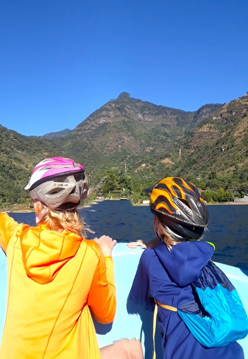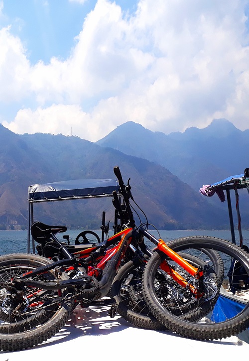 desde nuestra oficina salderemo en biciclea hacia el embarcado donde abordaremos una lancha que nos llevará hacia el pueblo de Tzununa alli empieza nuestro recorrido en bicicleta .